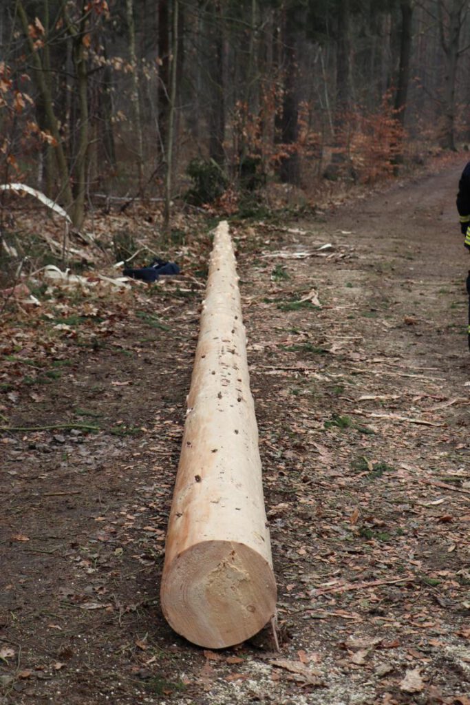 Neben neuen Schnitt- und Fälltechniken behandelten wir den Umgang mit unserem Greifzug und arbeiteten mit dem Biegesimulator. Die neue Fälltechnik (Sicherheitsfällschnitt) soll für eine noch sicherere Baumfällung sorgen.